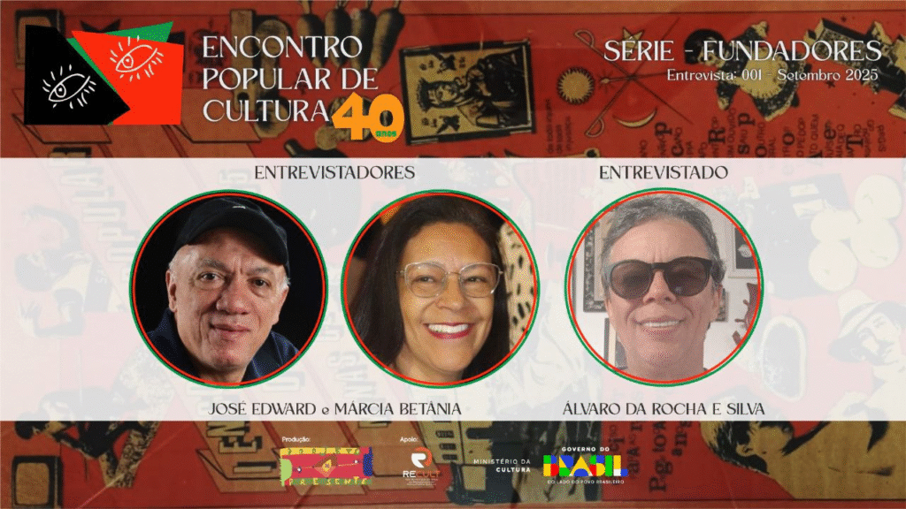 Os entrevistadores José Edward e Márcia Betânia recebem, nesta edição, Álvaro da Rocha e Silva — publicitário, militante de movimentos sociais e ecológicos, e participante orgânico de três Encontros Populares de Cultura, além de colaborar na formatação do quarto EPC.
