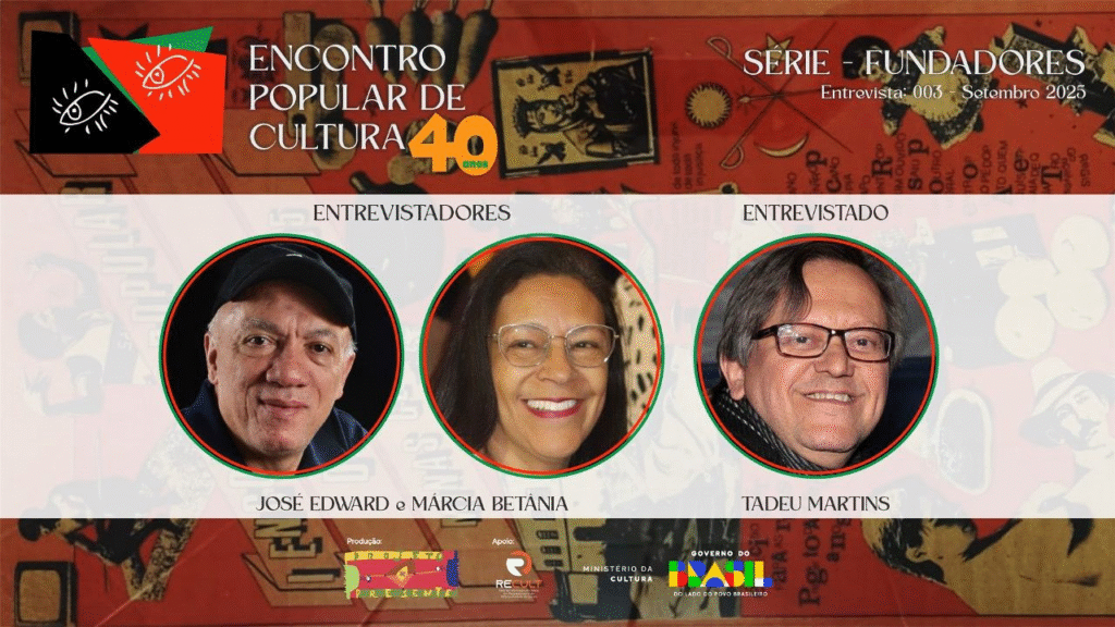 Os entrevistadores José Edward e Márcia Betânia recebem, nesta edição, Tadeu Martins — escritor e produtor cultural, natural de Itaobim, no Vale do Jequitinhonha.